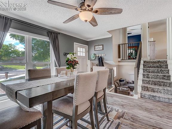 Welcome to this transformed three-bedroom, two-bathroom home! Step inside and be captivated by the stunning remodel, starting with the new, beautiful LVP flooring that flows seamlessly throughout the main and upper levels. The attention to detail is evident in the meticulously installed flooring, baseboards, interior paint, and new carpeting on the lower level. The main level offers a versatile dining room that can easily be repurposed as a spacious living room. The kitchen boasts an open-concept design, complete with a convenient built-in coffee bar and a view of the mountains from the kitchen window. Upstairs, you'll discover the expansive main bedroom featuring an adjoining full bathroom and a walk-in closet. Don't miss the view of the mountains from the master window. The second bedroom is flooded with natural light through its large window and includes a roomy walk-in closet. Descending to the lower level, you'll find a cozy family room enhanced by a charming fireplace, a laundry area, a convenient half bathroom, and a third bedroom. Stepping outside from the kitchen, a spacious deck awaits you, providing an ideal space for outdoor barbecues and gatherings. The lower level area features a privacy fence, ensuring a tranquil and secluded atmosphere, and an added bonus—a dedicated dog run. Situated on a generous lot, this home offers ample parking and the added benefit of no HOA restrictions. With easy access to the Powers Corridor and I-25, commuting to any destination in Colorado Springs is a breeze. This location also provides a convenient commute to Fort Carson Army Base, Peterson Air Force Base, and Schriever Air Force Base. Don't miss your chance to experience this home's remarkable transformation and enjoy its comfort, convenience, and natural beauty. Schedule your showing today and make this Colorado Springs gem your own!