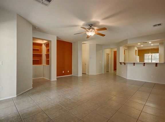 Beautiful open floor plan filled with subtle custom paint tones, beautiful tile flooring and picture windows that allow natural light to highlight every detail. Large media alcove and built in shelving for all your personal collections. Eat in kitchen offers white appliances, honey oak cabinets, ample counter space and a pantry. There are three spacious bedrooms with stunning wood flooring. Master suite is very spacious and has a large walk in closet. The master bath is spa like with garden tub, separate shower and dual sink vanity. Quaint covered patio overlooks the serene backyard with lush green grass and mature trees. Don't miss this wonderful home, it won't be on the market long. See it today!