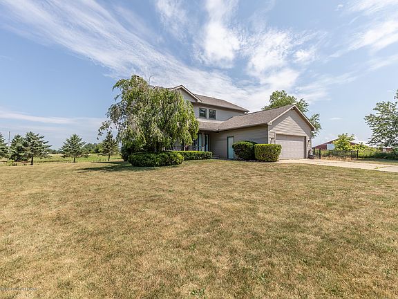 Elegant custom built 2 story home with 3 bedrooms, 2.5 baths, 2 car garage on a one acre country setting. Conveniently located just minutes from downtown, schools, shopping and expressway. Enter the front door to a grand foyer with hardwood bamboo flooring throughout. Airy open floor plan with large windows providing nice views and an abundance of natural light. Spacious rooms on main floor with large kitchen, living and dining area Plenty of cabinets with pantry in kitchen for additional storage. Large bedrooms upstairs with a full bath with double vanity. Full basement has nicely finished bonus room. Large fenced area, paved driveway, shed and expansive deck for outdoor entertaining. Kitchen appliances stay!