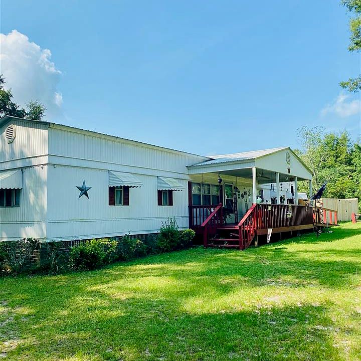 Charming mobile home that has been updated with two additional bedrooms and a covered roof. There is a large front porch with a ramp and a back porch as well. There is a new wood fence that has a six foot double gate around the side yard that includes a shop with concrete floors and lien twos. Brick skirting around the bottom of the mobile home and a small dog pen. There is also chain linked fencing off the back of the home. The living room has vaulted ceilings with wood beams. There is a large kitchen with a center island, a butcher block cabinet that stays, and a large hutch. This is a split plan with two bedrooms on one side and two bedrooms on the other. Some furniture included.