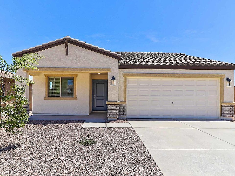 Located within the picturesque community of Parkeplace at Buckeye, the Bisbee plan features an open floor plan, 3 bedrooms and 2 baths. This beautiful, new single story home comes with tons of upgrades including energy efficient appliances, spacious countertops, custom wood cabinets, brushed nickel hardware and an attached two car garage. The Bisbee features a fully fenced backyard and front yard landscaping.