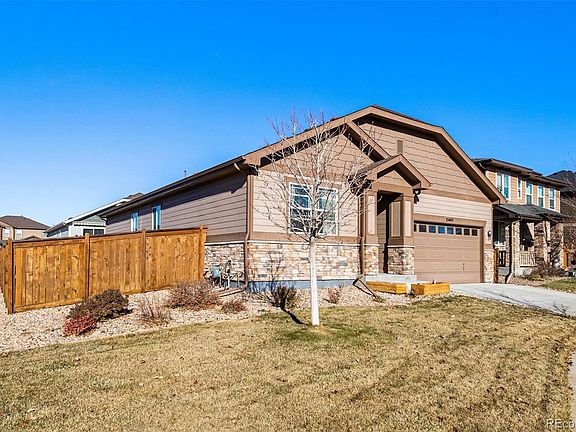 Gorgeous ranch style home located in the beautiful tradition's neighborhood. Large corner lot with relaxing front porch. 2 car garages. 3 bedrooms PLUS an office. Open concept with tons of natural light. Upgraded EVERYTHING in the gourmet Kitchen! Slab granite counters, glass tile back-splash, large island stainless appliances, double oven, gas cook top. Adjacent eat-in space w/room for a large table. Cozy gas fireplace in spacious living room. Master suite w/walk-in closet & private 5-piece bath featuring large soaking tub. Generous size guest bedrooms. Guest bath features dual sinks. MASSIVE, full unfinished basement ready for your finishes w/rough-in plumbing for future bathroom. Professionally landscaped yard with a patio & full fencing. Walking distance to school & both community parks.