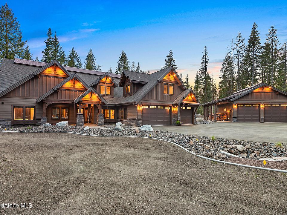 Your NORTH IDAHO Dream awaits! Beautiful CUSTOM HOME and 30 x 36 fully finished SHOP by local premier builder, nestled in the middle of 10 private parked out acres, just a 7 minute WALK to the lake. Featuring custom hand-hewn timbers with accent lighting, true barn wood, custom metal work and masonry accents throughout the home, real wood custom built fireplace, covered front porch and large back patio with cedar T&G. The kitchen is an entertaining dream with a 12 ft kitchen island, large walk-in pantry, Thermador appliances, and plenty of custom cabinetry for all your storage needs. Master En Suite is a show stopper with barn barn wood and hand-hewn beams, featuring heated bathroom floors, dual shower heads in the larges tiled shower, freestanding tub set up for relaxation under the dimming light and masonry accent. The cover patio has gas connection for your BBQ needs, a gas fire pit in addition to the wood burning fire pit. The home is pre-wired for a hot tub, hard wired security cameras, Starlink Internet and beautiful accent soffit lighting. Garage and SHOP are FULLY finished with epoxy floors, gas heaters, LED lighting, and the shop features a half bath . No detail was overlooked on this custom home, don't miss out on this opportunity!