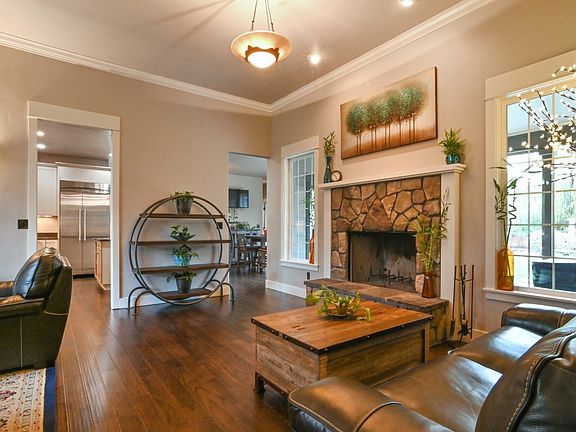 One level pristine show home on nearly 1/2 acre in sought after subdivision. Luxury amenities include new plank hardwood flooring throughout. High ceilings, dramatic stone fireplace, central vac, Chefs kitchen featuring all Thermador appliances, island & bar with abundant storage. Over sized garage with additional pull-through shop. Private entertainer's back yard with covered patio, pond, wood fireplace, pergola, underground sprinklers & landscape lighting. Large gated RV parking parking.