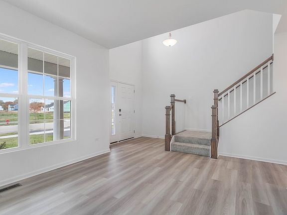 ***Special Financing Available-Below Market Interest Rate*** Home will be completed in November. Welcome to the Dunbar, one of our most highly acclaimed single family floorplans! With 2,470 square feet, four bedrooms, two-and-a-half bathrooms, a basement, and a two-car garage, you'll see why so many people love this home! The front door leads you to a spacious two-story foyer for a dramatic entryway. To the side is a flex room, which you can use as a home office, play room, or even a home gym-the possibilities are truly endless. The angled staircase that guides you upstairs to the upper floor is located across from the flex room. Continue forward on the main floor and you come to a spacious coat closet and powder room, strategically tucked away but easily accessible for guests. The main hub of the home holds the family room, breakfast area, and kitchen. The kitchen is open and spans two walls with cabinetry. An island has also been added for additional seating and entertaining possibilities The family room has plenty of windows to let natural light in. The mud room leads to the two-car garage. Head upstairs and you'll first come across the secondary bedrooms that share a hallway bathroom. The owner's suite sits in the back of the home, stretching from one side of the home to the other. The bedroom is nestled in the corner and is filled with natural light, thanks to its two walls of windows. The en-suite bathroom sits to the side of the bedroom, still in the rear of the home, and includes a tiled shower, dual sink vanity and large soaking tub. Finishing off the second floor is a convenient laundry room with a linen closet, which means no more lugging laundry baskets up and down the stairs. Rounding out this home is a full basement with a rough in for a future bathroom. Contact us today to see the Dunbar for yourself! Broker must be present at clients first visit to any M/I Homes community. Lot 46