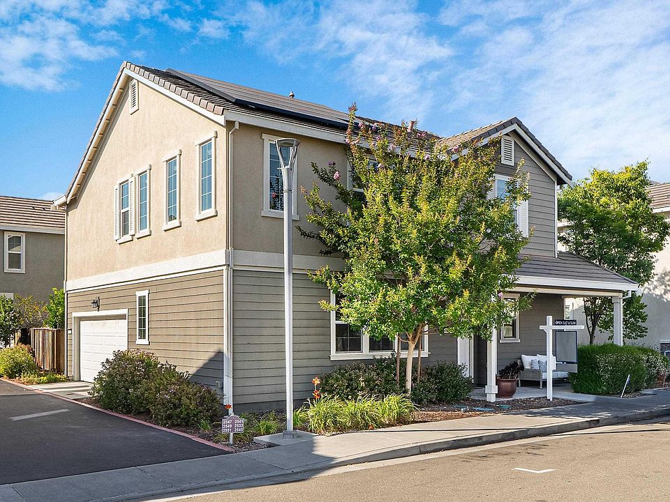 This is a former model home! This stunning single-family home, built in 2016, is nestled in the desirable Spindrift community. Enjoy the convenience of walking to the community park, Costco, and Starbucks, with easy access to HWY 880. It offers 3 beds, 2.5 baths, 2047 sqft of living space, and 2523 sqft of corner lot. This modern home includes designer tile flooring throughout the downstairs; Window treatments and recessed lighting, TV paneled walls and designed accent walls; KitchenAid stainless steel appliances; solar system and double pane windows; A Tankless water heater; and A powder room downstairs. The gourmet kitchen has a spacious island for culinary creations; Shaker maple cabinets and quartz countertops; a Mosaic backsplash; a built-in double oven; Gas stove with a powerful hood. The Upstairs features a master suite with a separate stall shower and tub; double vanity and large walk-in closet; two additional bedrooms and a hall bath; Versatile loft area. This home is perfect for those seeking modern living with convenient amenities. Don't miss the opportunity to make this beautiful house your new home!