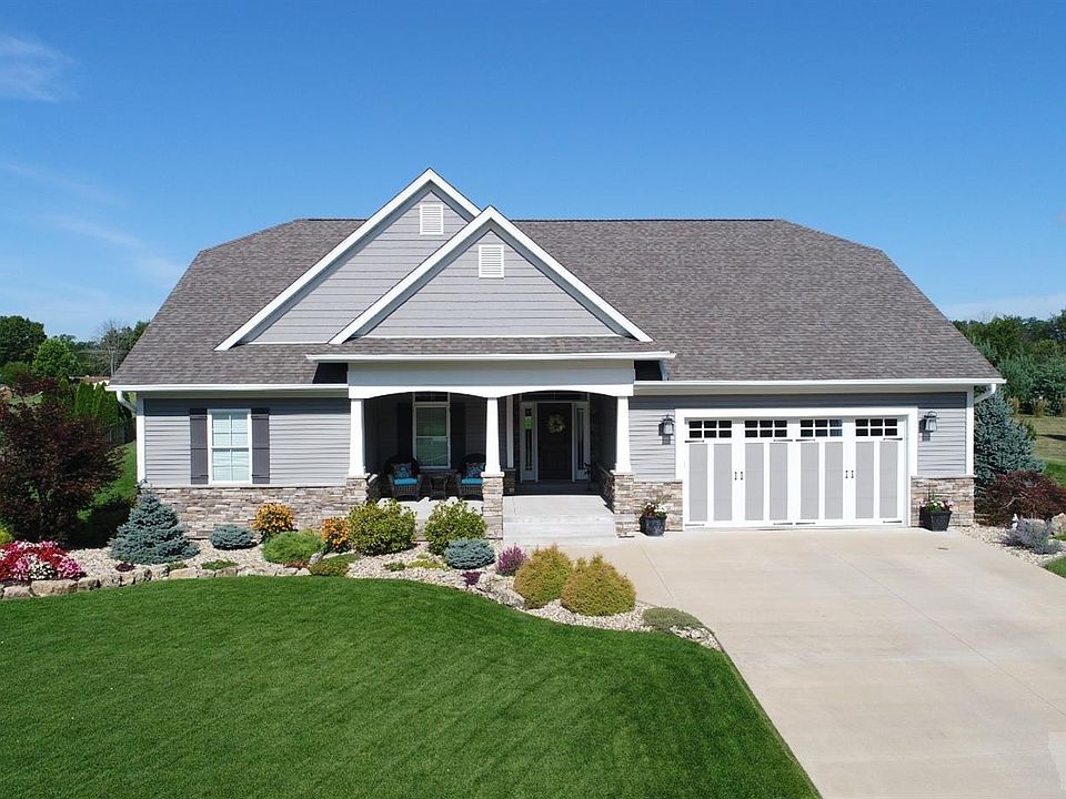 ABSOLUTELY IMPECCABLE FIVE-YEAR NEW CUSTOM CRAFTSMAN STYLE HOME. Enter through a curved ceiling entry into the living room showcased by a floor to ceiling stone gas fireplace with a large custom mantle. Open floor plan on the main level. The master bedroom has an ample walk-in closet, attractive en suite bathroom . Two additional bedrooms (one currently utilized as an office), a full bathroom, and a laundry room with half bath complete the main floor. Lower level is unfinished but has finished drywall and painted 9'perimeter walls, complete with electrical, HVAC, wired for cable TV, egress window and is plumbed for a full bath. Large, meticulously maintained irrigated lawn. Front and back covered porches with beautiful wood ceilings and a spacious patio. Custom storage shed was built to match the house, has a concrete floor and electric. Oversized, finished 2 car garage. Located on a private cul-de-sac street with no through traffic. EXCEPTIONALLY WELL MAINTAINED!