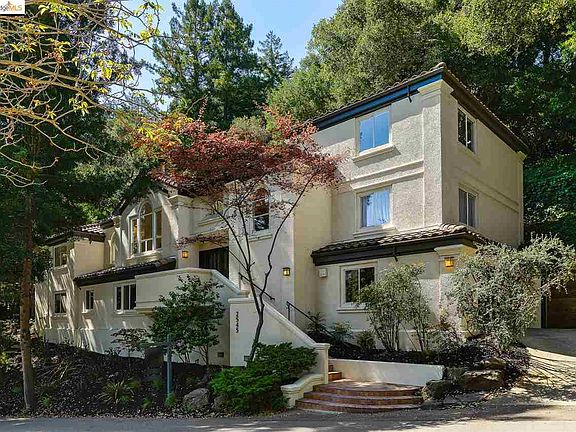 Oakmore Mediterranean with lower-level AuPair! Spacious Light-filled living room with vaulted ceilings & fireplace. Formal dining room flowing onto the rear private patios surrounded by lush gardens. Updated chef's kitchen with stone countertops & breakfast bar, stainless appliances, wine refrigeration system and a separate plus-room with built-in command center. Expansive master suite with soaking tub and separate shower stall, dual sinks and 2 walk-in closets. The lower level of the home features a spacious one-bedroom au-pair suite with windows offering abundant natural light, full bathroom, and kitchen. The attached two-car garage offers direct access directly into the home and has ample storage.