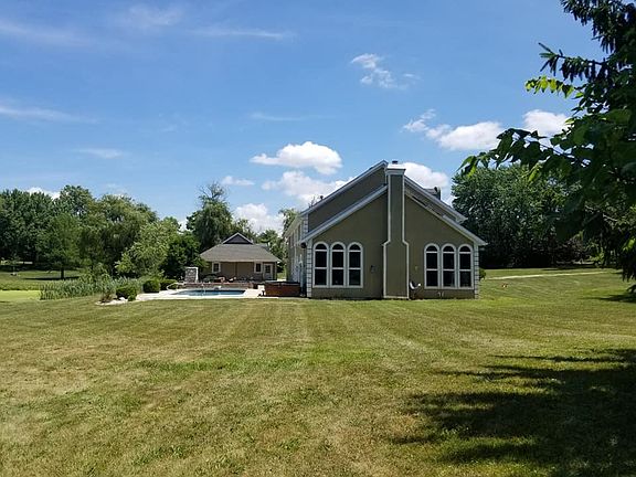 CONTINGENT ACCEPTING BACKUP OFFERS PER SELLER. See this one of a kind property just on the edge of Marion. Beautiful landscape from every window which includes 5.3 acres, partially wooded with pond and in ground pool. 4 plus bedrooms including two master suites and 4 total bathrooms. The theatre room on the main level could also be used as 5th bedroom with connecting full bath. Kitchen has new granite counter tops and back splash with breakfast area, formal dining room and giant great room. The great room includes a sunken room with gas fireplace, lighted stain glass windows and the pool table stays. You will find a stairway on this side of the home leading upstairs to the bedrooms. The large Family room opens to another stairway leading to two foyer areas to use for your choosing. Master Suite 1 has a full bath, walk in closet, gas fireplace and den/office. Master Suite 2 has a walk in closet and full bath as well. The other two bedrooms also have a bathroom to share and new carpet. Home has 1 car attached garage and 3.5 car detached garage with workshop and pool shower area. All appliances stay but are not warrantied. There is so much to say about this property, schedule your private showing today!