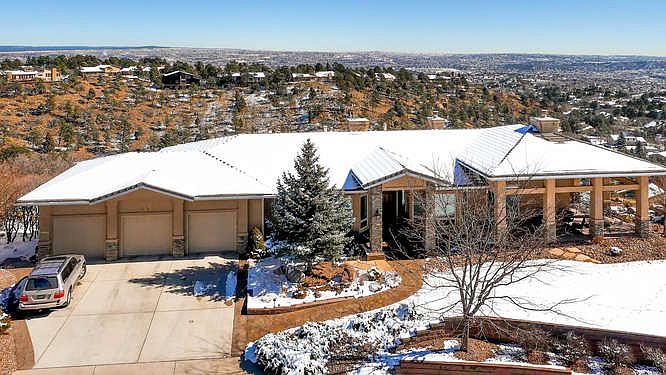 Absolutely stunning 360 degree views of Pikes Peak AND the city! This fully custom soft contemporary home sits out on an elevated point at the top of Hunters Point on 1.59 acres at the end of a cul-de-sac. Experience 3 different outdoor living spaces, all with their own unique views. The open floor plan provides a loaded master suite on the main with a gourmet kitchen offering a Sub zero fridge, Dacor range /vent and Cherry cabinets. The home also offers: Pella windows throughout, plantation shutters and custom drapes, AC (main level), large walk in closets for all bedrooms, radiant floors throughout including the garage, 8 foot doors, oversized 3 car garage w/ an 11 ft door for RV, whole house music system, wine cellar, wet bar, giant workshop, tile roof, plumbed for hot tub off master, fully landscaped with stream this home must be seen to be appreciated!