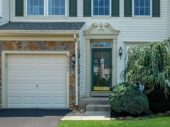 Looking for a meticulous and well-maintained townhome in Hilltown Township? Welcome to 2545 Peachtree Drive in the popular community of Orchard Hill! This wonderful home was built in 2003 and offers three bedrooms and 2.5 baths. It features warm wood floors and crown molding on the entire first level. In addition, both the living and dining rooms have chair rail. Throughout the home are new, on-trend lighting fixtures that elevate the townhome's overall design aesthetic and enhance the beautiful neutral paint palette. In the sitting room on the main floor is a gas fireplace and volume ceiling, as well as a French door with built-in blind leading to the deck. The kitchen, with its beautiful wood cabinetry and solid surface countertops includes such features as a pantry, garbage disposal, and water filtration system at the sink. Upstairs, the primary bedroom with cathedral ceiling is spacious and light-filled. It offers a walk-in closet and en suite bathroom with stall shower, jetted tub and double vanity. Along with two additional bedrooms is a hall bath with tiled tub/shower. Across the hall is the convenient laundry room with utility sink. Beyond the back yard deck is open lawn and greenery. There are a number of updates to the house -- Roof (2017 ), HVAC - Furnace and Condenser (2021), Hot Water Heater (2020), Water Softener with Whole House Water Filtration System - Reverse Osmosis (2015), Dishwasher (2016), Vented Attic with Fan (2020), Back Door (2016). This lovely property is the definition of "move-in" ready!