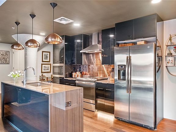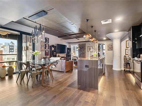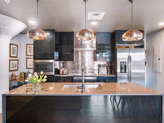 Welcome to this beautiful 2 bed/ 2.5 bath Strip District condo w/ a private terrace. Less than 5 years old! 408 was designed/upgraded w/ a fine attention to detail, combining luxury finishes while paying homage to the building's industrial character. Kitchen features modern, acrylic-style cabinetry, Eramo stone countertops, Tom Dixon pendants, copper backsplash, toe-kick lighting, & GE appliances w/ vented hood & separate microwave drawer. Open floor plan has ample space for dining & living areas featuring original industrial touches like the dramatic column & concrete ceilings. Private, covered terrace faces the city skyline. Both bedrooms are generously sized w/ ensuite baths. Primary suite features a luxury-hotel style bathroom w/ double sinks, LED mirrors, Toto toilet, & wet room shower w/ freestanding soaking tub. Huge LERTA tax abatement til 2030! Garage parking w/private garage door, fits a large SUV! Building amenities include rooftop lounge/terrace & gym w/skyline views.