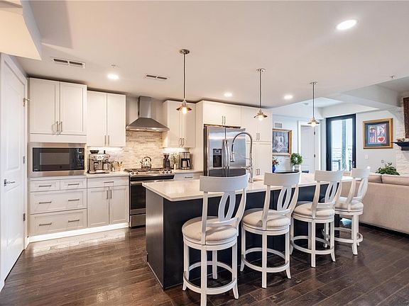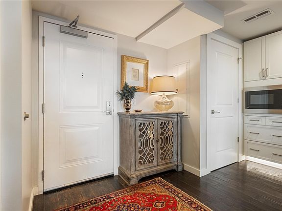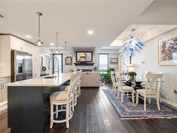 Beautifully appointed, 2 bed / 2.5 bath condo in the heart of the vibrant Strip District. Unit features a spacious floorplan and a large, private balcony that spans the length of the unit. Only 4 years old! The upgraded kitchen includes gas cooking, built-in microwave, wine cooler, quartz countertops, pantry storage, pullout shelving in cabinets, and large island. Electric fireplace adds modern style and warmth to the living area. Dining area features art glass chandelier. Primary suite includes a walk-in closet with custom shelving and large bathroom with marble tile, two vanities, LED mirrors, quartz counters, and large shower. Second bedroom also has ensuite bath with quartz counters, LED mirrors, and bathtub. Powder room & laundry off of living area. Building has rooftop lounge, deck and fitness center with city skyline views. Includes an integral parking space off of the elevator with its own private storage unit! Huge LERTA tax abatement on city/school taxes for the next 6 years!