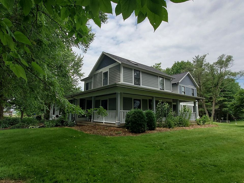Remarkable, one of a kind acreage, w/19 acres of rolling hills & timber & private pond! 4 stall barn, in/outdoor run, 800 sq ft outbuilding, loafing shed & 3 car heated garage. Beautiful 5 bd/4 bath home w/great natural light offers spacious living areas! Kitchen has Dacor appliances, island/b'fast bar, pantry, granite, maple cabinets & flooring. Master suite w/walk-in closet & balcony! Geothermal central air & heating. 4 season Sunrm w/radiant floor heat. New Roof '16, Exterior Paint '20