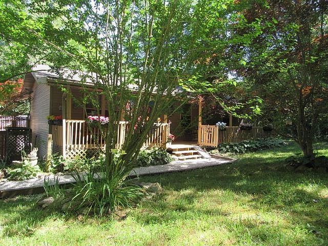 Looking for a home in the country with some acreage? This 10 acre parcel is every deer hunters paradise with a creek running through the property, a small pond and 3 deer stands that will be left for the new owners. The home features 3/4" hardwood flooring in the living room, dining room and hallway. The kitchen has stainless appliances, including a wine chiller and gorgeous views of the wooded acreage and all of the wildlife right out your kitchen window! There are 2 bedrooms and 2 baths on the main level. The family room has a pool table, electric fireplace, and bar area complete with a built-in liquor cabinet and microwave. The den has a full wall bookcase and desk. There is a room in the basement that is used as a bedroom, but does not have a closet. There is a bathroom in the basement as well. All 3 bathrooms have pretty tile floors. Patio doors in the dining room and family room offer plenty of light and access to the covered patio and open deck. The full covered front porch is the perfect spot to relax and take in the beautiful views! The detached garage was expanded with added storage areas. Includes: Refrigerator, range/oven, wine chiller, microwave, washer, dryer, all window treatments, 2 bathroom cabinets, TV mount, pool table & equipment, electric dartboard, 2 barstools, bar microwave, flagpole, swing and lawn mower. Excludes: Freezer. Seller statement regarding the cistern: "The house is currently run off of a Cistern filled by a tank (we spend less than $20 a month hauling $20 is 3500 gallons), but a new well pump and filter will be installed, that will pump water into the cistern, so water doesn't have to be hauled." Per the owners, interior and exterior perimeter drains were added during construction, as well as added insulation in between floors and walls for more sound proofing and energy efficiency. If country life is for you, don't miss this opportunity to own 10 acres of your own.