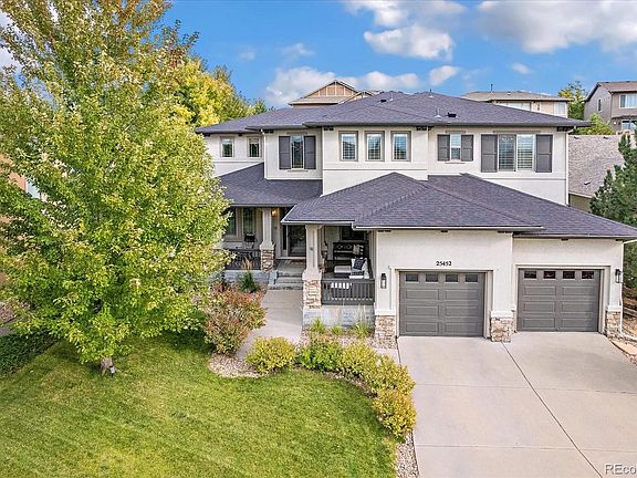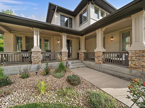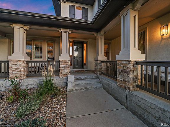 Exquisitely Updated Residence in Prestigious Tallyns Reach on a Very Private Cul-De-Sac! This home has been completely transformed top to bottom into a masterpiece with mature landscaping and a wrap around front porch. Inside you are greeted by a stunning vaulted foyer, white-oak style hickory flooring, and sweeping wrought iron staircase. Large picture windows with plantation shutters stream in natural light, and built-in surround sound is featured in many rooms. The formal entertaining room welcomes you with custom wainscoting and crown molding, and the formal dining room with butler's pantry can host special events for years to come. The gourmet chef's kitchen has been highly upgraded with a large center island with prep sink, quartz counters, soft close cabinetry with under cabinet lighting, GE Monogram appliance suite with French door fridge, range hood, double ovens/Advantium convection oven, walk-in pantry, and an abundance of counter and cabinet space for prep and storage. A main floor office with French doors and feature wall makes a perfect, private retreat. The vaulted 2-story family room with 3-sided stone fireplace, shiplap nook, and built-in details wows. The sumptuous primary suite has a custom wainscoting detail at the headboard, striking chandelier, and French doors that lead to a private deck. Unwind in the spa-like bathroom with jetted tub, dual vanities, oversized shower with decorative tile, and massive walk-in closet. The loft provides a functional homework/home office space. 3 very spacious secondary bedrooms have either private en-suite or Jack-and-Jill bath access. The outdoor living space is a private and tranquil entertainer's delight with an expansive stamped concrete patio with surround sound. Located in one of the most sought-after neighborhoods, this home offers close proximity to the finest amenities the Denver Metro area has to offer, walking distance to schools. This extraordinary home sets a new standard for luxury living!