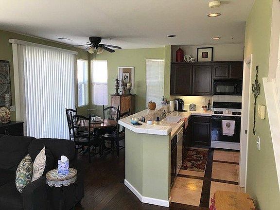 Located on a private corner lot with mountain & greenbelt views. Open floor plan with travertine & wood flooring. Half bath located on 1st floor. Upstairs has a large master bedroom, vaulted cieling, bath and walk-in closet. Two bedrooms share a 2nd full bath. Laundry located on the 2nd floor. Rear yard has a concrete patio with lawn & the hillside is terraced with irrigation. Perfect for vegetable garden. School and pool a close walk.