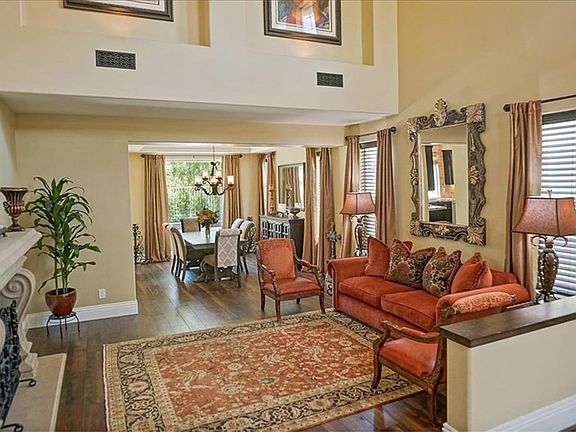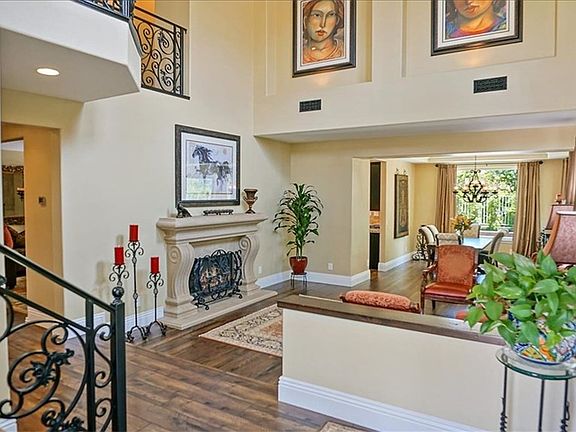 BACK ON MARKET!! NO MELLO ROOS and LOW HOA combined with TOO MANY UPGRADES to list! Come see it for yourself! You will be in AWE and IMPRESSED as you drive up to your cul-de-sac home and walk through your elegant wrought iron front doors and right into the formal living room with vaulted ceilings. The adjacent dining room boasting a beautiful and warm high end wood-like laminate flooring from Germany. The wrought iron staircase railing adorns the entry and the extra large double sided fireplace in the living room provides a grand and glamorous look. The gourmet kitchen has been completely redone showcasing Copenhagen granite counters, a custom built center island hosting a wine refrigerator, newer professional stainless steel appliances and beautiful chandeliers. The warm and cozy family room offers a unique stone wall with custom cabinetry and lightning to highlight this room. With one FULL BEDROOM AND BATH DOWNSTAIRS, you will also enjoy 2 additional bedrooms upstairs PLUS a master suite everyone is bound to envy! The luxurious master bedroom and bath boasts a grandiose double door entry and chandelier, tile and marble shower, custom vanity with ladies make up counter and his and hers walk-in master closets. As if all of this isn't enough, ADDITIONAL UPGRADES INCLUDE: 3 car garage, tankless water heater, dual A/C units, exterior lighting, new RING doorbell and cameras on exterior of home, and new landscaping in your private and lush pool sized backyard with MOUNTAIN VIEWS!
