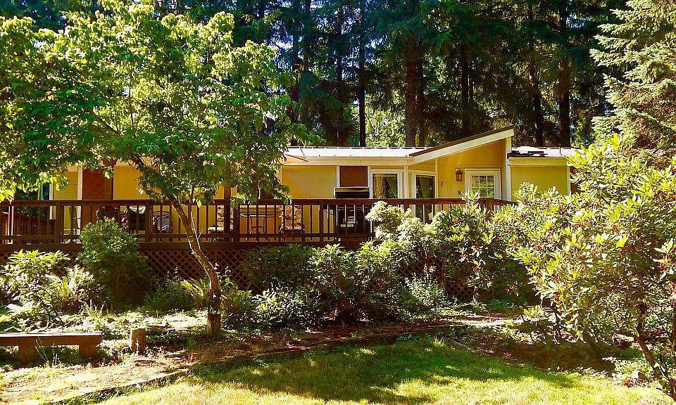 Surrounded by Douglas fir trees this beautifully landscaped house has wonderful views from every window. Over 100 rhododendrons and azaleas, along with apple trees, grape vines, and a huge blueberry bush . The 2.4 acre property is surrounded by a seasonal creek and a designated green space by the city of Veneta. The six car garages plus a 2 car RV space is perfect for multiple vehicles or a small business storage areas. The manufactured home has all new carpeting as of 6/22 and new oak flooring for the kitchen and dining room as of 4/17. A back deck and hot tub were added 10/15.