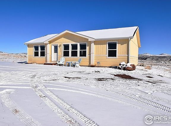 Easy access to Fort Collins or Laramie. Newer Clayton home with six inch exterior walls on 37 acres. Includes 40X30 pole barn with 5.8 inch cement floor and electric. Propane tank is leased through Suburban Propane. Seller will have septic pumped and inspected. Well has excellent flow rates with fantastic water. Acreage is directly on highway 287 but home is set very far back from 287 so traffic noise is not an issue. Great 360 views of Red Mountain, Mummy Range and open prairie.
