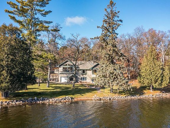 Delightful GULL LAKE CHAIN 4BR-3BA Lake Retreat featuring 210ft of shoreline, 1.4 acres of park-like grounds, level elevation, a hard lake bottom, southerly exposure & amazing panoramic views! This Bright & cheerful home offers plenty of space for entertaining/Pine T & G vaulted ceilings/HUGE exclusive primary suite featuring a private living area complete with a fireplace (Previous owners used this space as a 4th bedroom/bunkroom)-deluxe bath-jetted tub-tiled shower-large walk-in closet-4 season sunroom/lakeside family room with wood burning stone FP & adjoining rec. room with wet bar/Enjoy the beautiful views from the lakeside patio/wrap-around deck/insulated & heated garage/just completed professionally designed rock retaining walls & landscaping/great location…Enjoy all the amenities the Lakes Area has to offer!