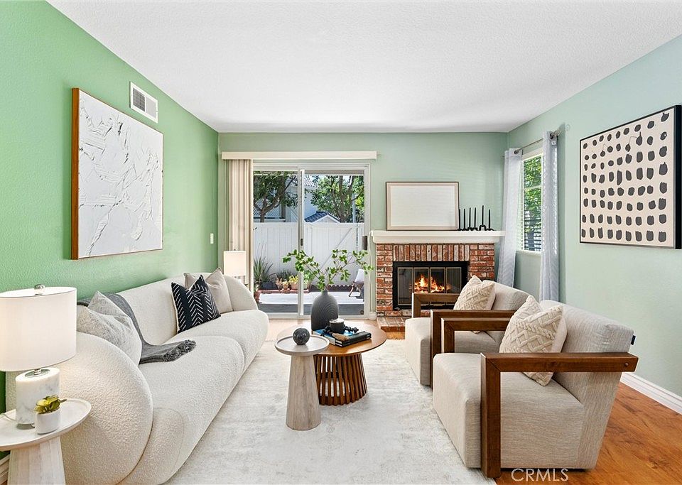 Welcome to 25456 Sonoma #26 in the beautiful Willow Glen neighborhood! Tucked in the back of this peaceful community, this charming home has 2 bedrooms and 1.25 bathrooms spread across 938 square feet of open concept living space. The home's single-level floor plan and light and bright atmosphere make it feel expansive. It also has the added convenience of having no steps at all inside or into the backyard! The home also features upgrades throughout that create a modern ambiance including wood floors throughout, updated lighting fixtures, and an upgraded bathroom. Upon entry, the Great Room's living space features a cozy fireplace, perfect for curling up with a good book, as well as a slider to the backyard. The Kitchen and dining space boast an open concept with bar seating, granite countertops, and updated appliances. Covered and uncovered patios as well as a grassy area create a tranquil backyard space that is ideal for entertaining. Both bedrooms face the private backyard including the Primary Suite with dual closets and an attached bathroom. The spa-like Bathroom has been tastefully upgraded with new vanities, granite countertops, and limestone flooring and shower tile - the perfect oasis. A convenient laundry closet with room for a side by side washer and dryer, a direct access one car garage, and assigned parking space round out the amazing features of this home. Residents of Willow Glen have enviable amenities that include a pool & spa, sport court, multiple tennis courts and two pickleball courts - for resident use only! 25456 Sonoma is also walking distance to Tamarisk and Peachwood parks, which both have playgrounds, as well as walking trails, and is a short drive to The Irvine Spectrum and plentiful shopping and dining on El Toro Road. The cherry on top is this home has no Mello-Roos! Single level homes like this do not last long - schedule a tour today!