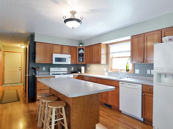 Spacious newer 2-story has poured foundation, center isle kitchen, mudroom w/1/2 bath, master suite w/walk-in closet and 3/4 bath, full guest bath, formal DR, low-e argot windows, oak millwork and cabinets, maint free exterior, big front porch, oversized 2 car garage. Beautiful brick patio. 3 bedrooms on one level.