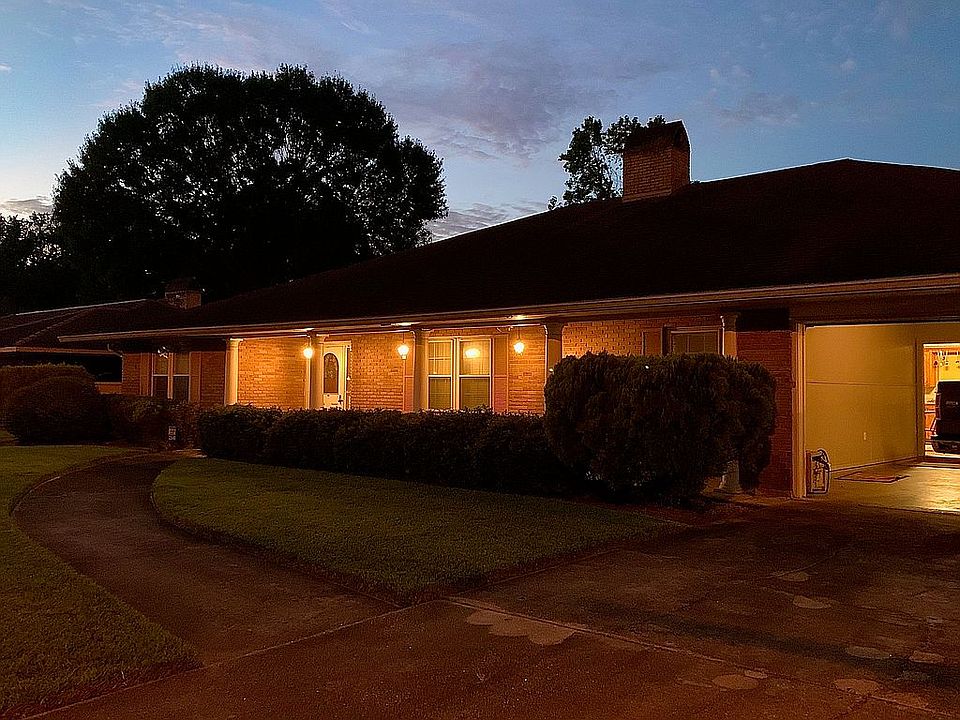 Four bedroom, 2 1/2 bedroom ranch home with three large living areas. Ideal home for raising a growing family and for entertaining. Master bedroom include an en suite full bathroom, large walk-in closet as well as two other closets. Bedrooms 2 and three are nice sized, perfect for sharing if necessary. Located at the opposite end of the house bedroom four has an en suite half-bath and could be a perfect space for teenagers or visitors. The spacious wood paneled family room includes a brick wall and fire place with hearth seating. Folding door in family room opens to a quaint full-side bar with space for four bar stools. Server side of bar includes server sink and mini frig, mirrored wall for storage and glassware. Sliding doors in family room lead to additional entertaining space that can be used as a children's playroom or a study. Kitchen area includes a nice Other feathers inculde *3 hallway closets, one of them cedar *Covered front porch with columns *Covered back patio *Nice size storage room in garage *Space and plumbing for indoor water cooler