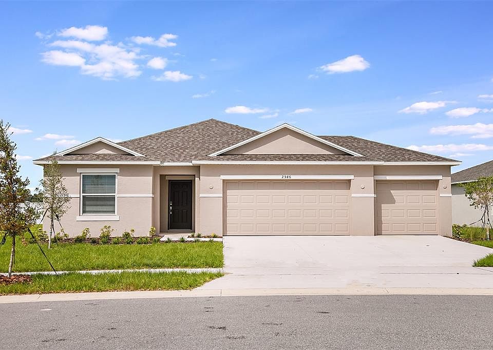 MLS#T3537344 Ready Now! This inviting single-story Cypress plan combines smart design with stylish details. Spanning 1,848 square feet, it features a seamless open-concept layout that connects the gathering room, dining room, and well-equipped kitchen with an island, creating a spacious feel. The home includes four bedrooms and two bathrooms, with a private primary suite at the back that boasts an attached bathroom with a dual sink vanity, walk-in closet, shower, and water closet. The three additional bedrooms are located near the foyer at the front of the home. Additionally, the home offers a three-car garage.