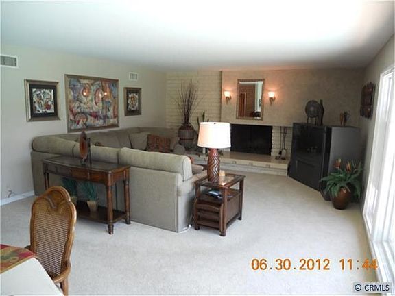 MAJOR PRICE REDUCTION!! Nestled on a tree lined Cul-De-Sac, 4 bds 2 ba, single story Smythe built home has it all. Open & bright, newer windows include a huge wall of windows with view of back gardens & pool. Double door entry, wide entry hall to formal living room with large brick FP,newer neutral carpeting, bamboo wood floors. Formal DR with view of the pool and gardens. Kitchen Island with 5 burner cooktop & breakfast bar. Double Oven, Stainless Steel Sink, wonderful wood cabinets, newer appliances. The Kitchen flows into the Family room with view and access to backyard and Pool through newer glass dual sliders. Separate large private master suite with mirrored wardrobe closet doors and access to garden areas. The 3 bedrooms are on the other side of the home; 4th bedroom/OFFICE with plantation shutters. Large hall bath with access to outside pool area and back yard. Inside extra large laundry room with built in storage. Over sized two car garage with built in storage
