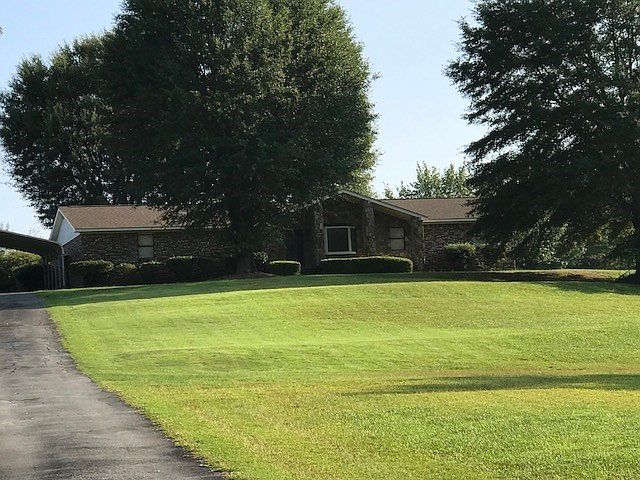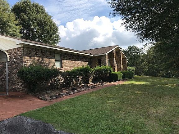 Full brick with vinyl eaves. Huge rooms and 5.6+- acres. All on one level, There is a large bonus room/den with a pool table. Large living room with fireplace. Bathroom with a walk in tub, master bedroom and bath plus two additional large bedrooms. Big kitchen with island and eat in area. Private back yard with some large hardwood trees, covered carport and a tractor shed.