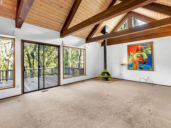 Tucked away in the lush forests of Portland’s west hills, this mid-century modern home offers a rare blend of privacy, nature, and architectural charm. Backing directly onto the Marquam Trail, this property is a dream for outdoor enthusiasts, providing instant access to miles of scenic hiking trails while being just minutes from the city. Floor-to-ceiling windows bring the beauty of the Pacific Northwest indoors, flooding the home with natural light and offering serene forest views. Classic mid-century details like vaulted ceilings, exposed beams, and an open-concept living space set the stage for cozy evenings by the floating wood-burning fireplace. The spacious deck extends the living area outdoors, where you can sip coffee while listening to birdsong or enjoy the peaceful ambiance of towering evergreens. While the home retains its original vintage character, it presents an exciting opportunity for renovation and modernization. The kitchen, bedrooms, and baths are ready for your vision—whether you choose to restore its mid-century charm or reimagine it with contemporary updates.With its unmatched setting, timeless design, and limitless potential, this home is ready for the next owner to create their dream retreat in the woods. Don’t miss this chance to own a hidden gem in one of Portland’s most sought-after locations! [Home Energy Score = 3. HES Report at https://rpt.greenbuildingregistry.com/hes/OR10236063]