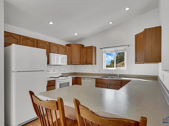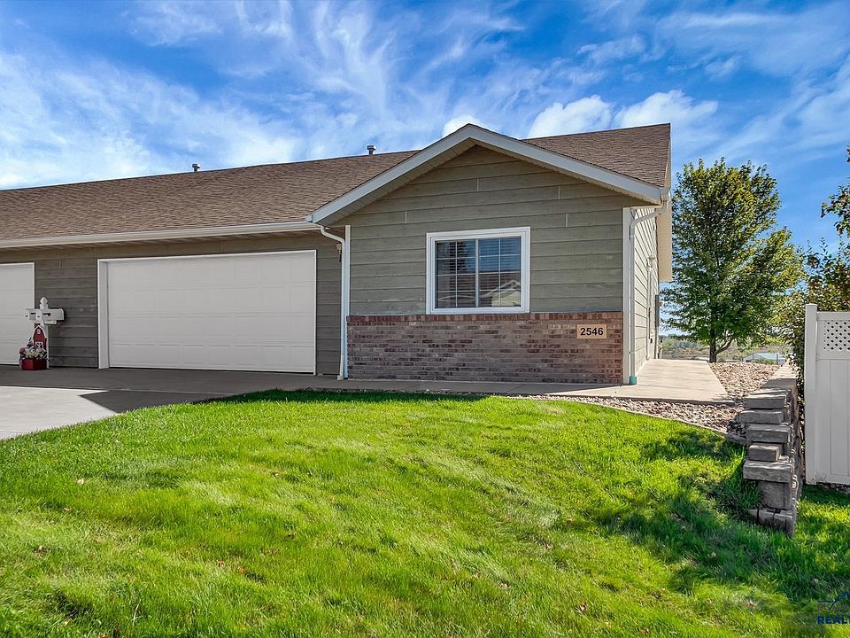 Zero threshold ranch style townhome located in a great SE Rapid City neighborhood. This two bedroom, two bath home has been very well cared for and is ready for it's new owner. Featuring an open concept floor plan with vaulted ceilings this townhome offers a bright and spacious living. The kitchen has plenty of cabinet space, breakfast bar and is open to the living and dining area. The primary bedroom offers it's own private bath, large walk-in closet and gas auxiliary heater. There is a also a second bedroom, bath and laundry/ mud room that leads to the finished two car garage. Off of the dining room there is sliding glass door leading to a patio and large back yard with mature landscaping with sprinkler system. HOA is currently $50 a month and covers lawn mowing and sprinkler start up and shut down.