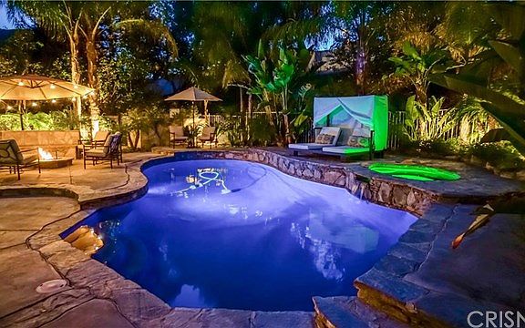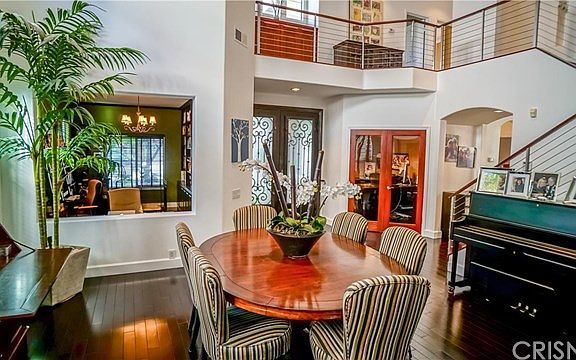 GORGEOUS 4 bedroom home PLUS an office and library...Upgraded and remodeled completely. WOW this is a 10..Gourmet kitchen designed by a professional Chef for ease of use includes custom hand crafted Cherry wood cabinets with European soft hinges & closing mechanisms. HUGE CENTER ISLAND w/black honed granite counters and stainless steel back-splash. Full stainless steel Viking professional kitchen 48" stove & hood built-in double ovens, microwave, dishwasher, refrigerator/freezer...family room, Living room and formal dining room features African Walnut solid hardwood flooring. Handcrafted concrete fireplace, built-in surround sound/whole house music entertainment system. Master suite features Natural Mexican river rock flooring. Master bath features handcrafted concrete shower/double sink and Jacuzzi tub surround custom glass shower. Custom built-ins in office and library. Entertainers Dream backyard with pool/spa outdoor gazebo. Stone outdoor bar/island complete with stainless steel outdoor kitchen and seating area with gas fire pit... extensive hardscape and lush landscaping. Very private yard....Close to freeway and shopping. This home is exceptional...Custom stair railing....too much to list. please see supplement...NO MELLO ROOS!!!!