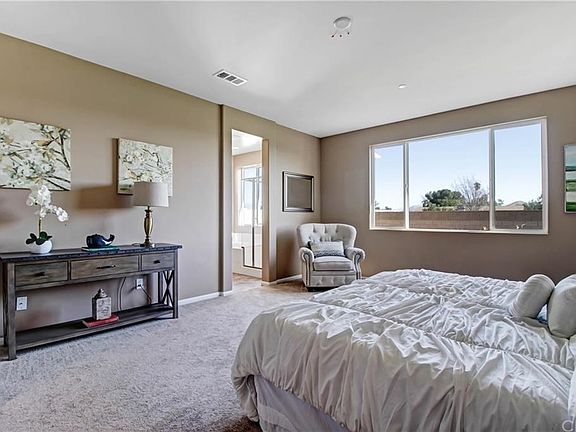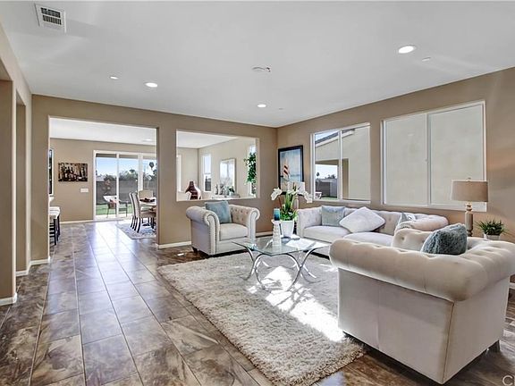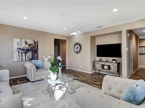 Beautiful BRAND NEW single-story home now available for sale with NO HOA AND NO MELLO ROOS! This breath-taking single-story home is located on a huge pie-shaped cul-de-sac lot just a short walk away from one of Menifee's best elementary schools, Ridgemoor Elementary School. This home offers 3 bedrooms plus a den with 2 and 1/2 baths. Oversized 3 car garage. Quartz counters standard, wood cabinetry, energy efficient features, beautiful double sliding patio doors included, quiet cool fan standard! Huge kitchen with plenty of storage, kitchen islands with space for seating, and recessed lighting. The master suite has a great walk-in closet and the master bath has a dual sinks with marble counter-tops standard. Laundry is located right outside of all 3 bedrooms and walk-in linen closet. These homes are selling quick, come get yours in time to select the features. Photos are of model home and for illustration purposes to give you an idea of what the finished and furnished home could look like. These homes are not complete yet which gives you time to customize to your personal preference.