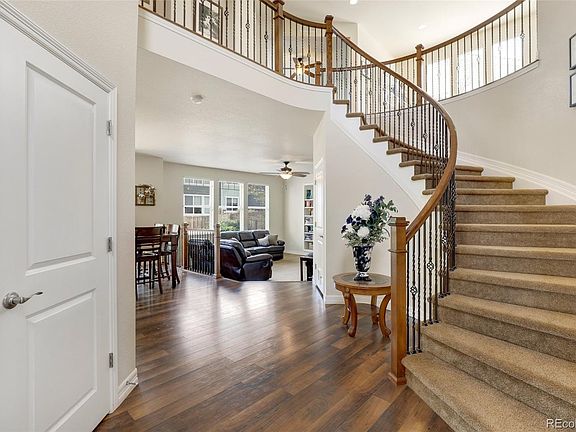 Your dream home awaits at this exquisite Craftsman-style home with direct access to Aurora Reservoir! Step inside to find a grand 2-story entry with high-quality laminate hardwood floors, abundant natural light, and neutral paint with crisp white trim throughout. Enjoy family and friend get-togethers in the formal dining room, while the open concept kitchen/eat-in nook/living room are perfect for everyday living. The eat-in kitchen is sure to please the home chef, boasting an eat-in nook, center island with seating, plenty of sleek granite countertops for easy meal prep, modern stainless steel appliances, dual ovens, and a large walk-in pantry to house all your kitchen essentials. Open the sliding glass door off the eat-in nook to the pretty and private backyard and enjoy the flagstone patio that's perfect for summertime BBQs. The sunken living room features a wall of windows to make it bright and sunny, a gas-burning fireplace to curl up next to with a good book, and built-in bookshelves showcasing the fireplace's tile surround. Upstairs, find a layout that included 3 cozy bedrooms, a versatile loft space, and an office that makes working from home easy. The master retreat is a treasure not to be missed. Not only does it offer a bright and cheerful main bedroom, but it also includes a large walk-in closet, a private covered balcony to enjoy a peaceful morning cup of coffee rain or shine, and a sophisticated 5-piece en-suite bath with incredible spa-worthy amenities right in your own home. You'll love the new rec center to be completed in 2021 only 1-block away along with the pool, clubhouse, and brand new park across the street. Quick access to Southlands Mall and surrounding shops and trendy restaurants and the outdoor enthusiast will enjoy the amenities of Aurora Reservoir with swimming and countless walking and biking trails to explore. With a new roof and water heater, this gem is truly move-in ready and waiting for you to call it home!