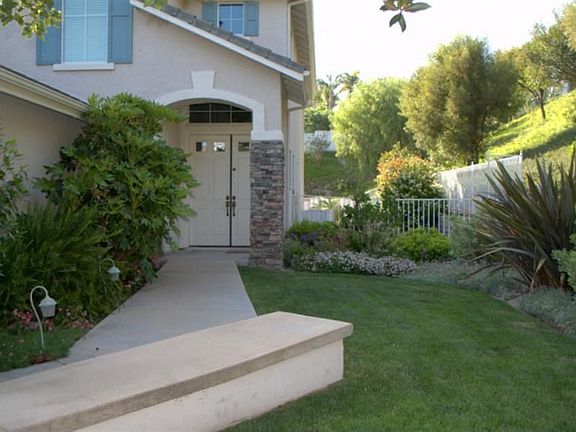 This is a Standard sale!!! This lovely Pacific Ranch Estates pool home is situated on a large lot at the end of a quiet cul de sac with only one neighbor on one side with no neighbor in the back offering the utmost in privacy. The entry has travertine tile and opens to expansive step-down living/dining room with cathedral ceilings and dual-sided gas fireplace. The family room shares the fireplace, has lots of built-ins and is wired for surround sound. On the same level an office with beautiful oak built-ins could be 4th bedroom. There is also a full guest bath accented with granite, and a laundry room with direct access to the garage. The second level offers 2 spacious bedrooms sharing a full bath with separate granite vanity and also on the second level a grand master suite with vaulted ceilings and private patio. The in-suite master bath offers 2 walk-in closets, soaking tub, and separate shower. The entertainer?s kitchen has Center Island, recessed lighting, and travertine tile and breakfast nook perfect for casual dining. Glass slider opens to a serene setting w/ covered patio and beautiful brick accented pool and spa with newer built-in BBQ complete w/ bar and refrigerator. The three-car garage offers ample room for both cars and storage.