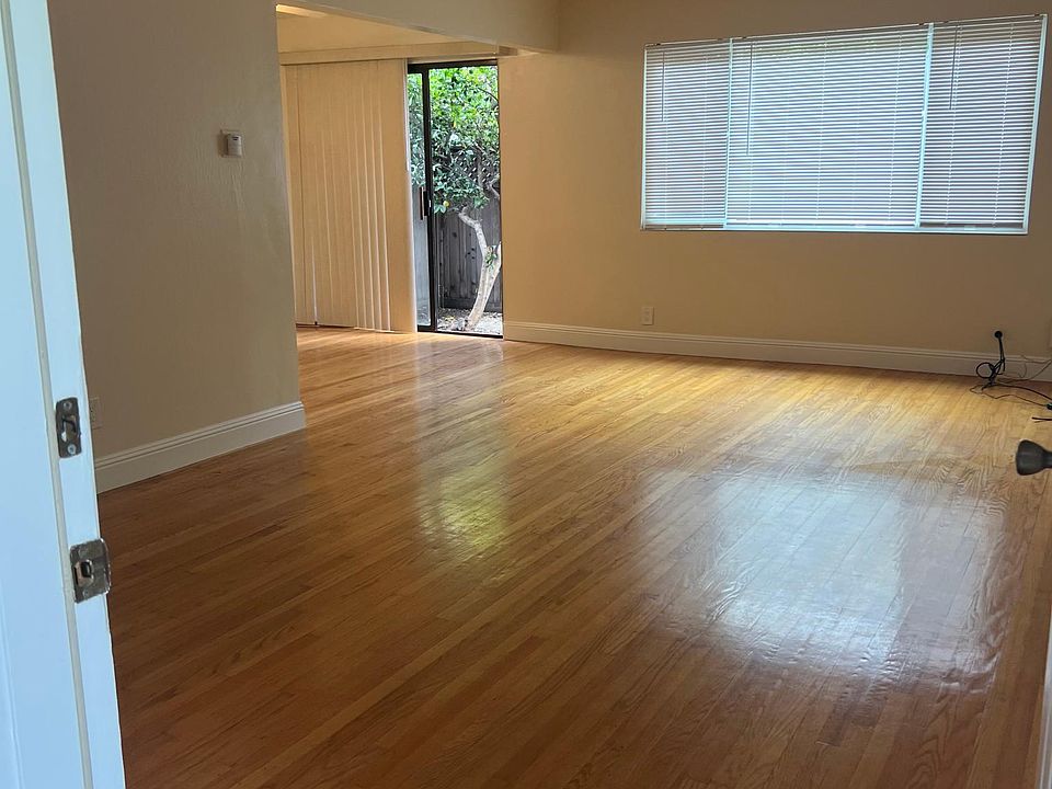 This quaint and homey 1 bedroom is located in a 6 unit building on a tree lines street in a lovely neighborhood with 2 parks, close to shopping, and The Redwood Day school just up the street. This spacious 1 bed room boasts a large living room with big bay windows, hardwood floors, large bedroom with mirrored sliding closet doors to a walk in closet, bathroom with shower over tub, and a well equipped kitchen with eating area leading out to a sweet patio where you can drink your morning coffee under the shade of a lemon tree. This building has a shared grassy yard, maintained by a gardener and has card operated laundry facilities are on site. 1 off street parking space comes with the unit which is located up the driveway in the back of the building. This is a strictly adhered to non smoking building and grounds. Please no pets. Security deposit is 1 x 1st months rent. Owner pays water and garbage. Security deposit is 1 x 1st months rent. No smoking or pets. 1 Off street parking place comes with this unit. Laundry on site. 1 year lease