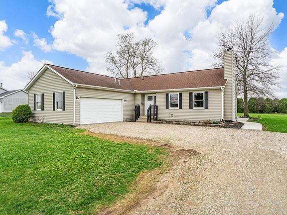 Enjoy peace and privacy on 1.45 acres in Salem Township with this well-kept 3-bed, 2-bath ranch. Nearly 1,500 sq ft of open living space, beautiful sunset views, an attached 568 sqft 2-car garage, a large open deck—perfect for relaxing or entertaining. Surrounded by open land in front and back, this secluded retreat sits in the West Liberty-Salem School District. Features a cozy fireplace, open layout, and excellent upkeep throughout. Country living with easy access to nearby towns. A rare find!