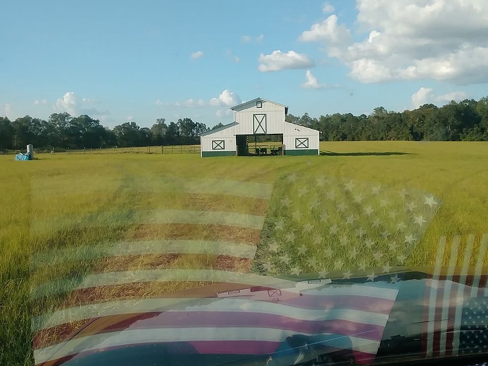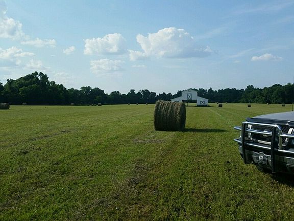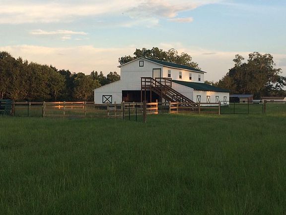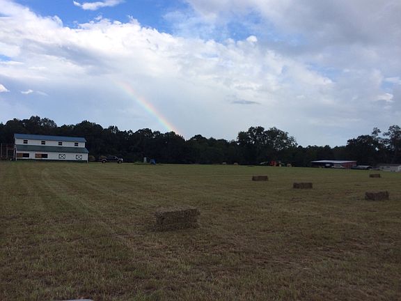 approximately 64acres, half woods, 30 acre Tift 9 Bahia grass pasture, has two working wells & two barns. Doublewide mobile home.