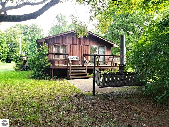 Quaint 2 bed (possible 3) 2 bath home with multiple decks, large heated garage: insulated, storage room, 3/4 bath, full basement, newer furnace, central air, covered screened in porch and handicap ramp. All this sits on a picturesque 1 acre lot with mature trees and quiet road. Siding on majority of the house is redwood siding. Owner owns the 1000 gal propane tank. Property located just miles away from the Federal Forest, Manistee River, Slagle Creek, and Caberfae Ski Resort.