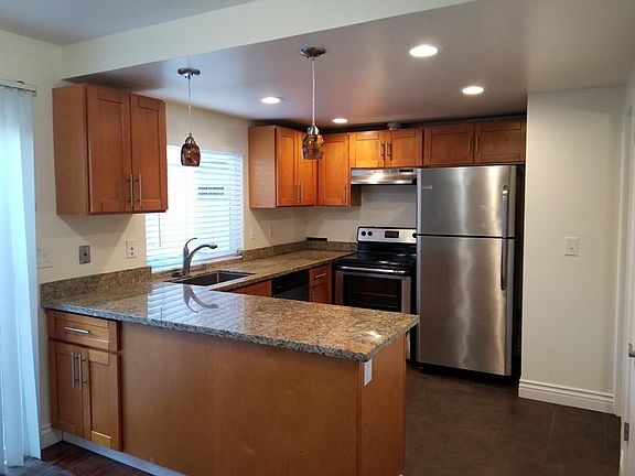 Beautiful 2 story town home in lovely established neighborhood. Laminate wood flooring on lower level. Updated kitchen with granite counters. Inside laundry. Washer, dryer & refrigerator provided. Access to Community pool. Private rear patio & 1 assigned covered carport. HOA Dues are paid & water is paid. Owner covers HOA dues & water.Tenant responsible for all other utilities. Security deposit is based on excellent credit and references. An additional deposit may be required from applicants with poor credit and/or references.