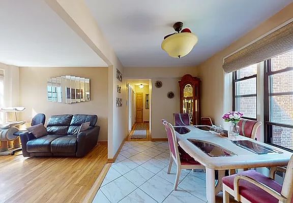 Welcome to Prime Gravesend! One of the best layouts in the building. Sunny and bright full three bedroom one bathroom apartment with amazing views with three exposures is located on the 6th floor of elevator building. The unit boasts big living room, separate windowed eat-in kitchen with custom made wooden cabinetry, stainless steel appliances, dishwasher, granite countertops, separate dining area, three generously sized bedrooms and renovated windowed bathroom. Hardwood floors are throughout. The closets are galore in the apartment. Monthly maintenance includes all utilities(electric, gas, heat and water). 25% down payment is required, no dogs and subleasing is not permitted. A well maintained co-op building offers: storage, updated laundry room, bike room, outside private courtyard with benches, two indoor garages and two outdoor parking lots( waiting list), live-in super. Close proximity to transportation, schools, multiple shopping options, etc...