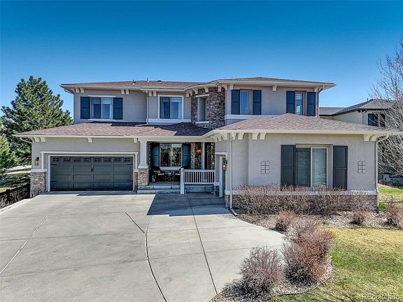 The one you have been waiting for Welcome home to this gorgeous Tallyn’s Reach Toll Brothers Belford model where no detail has been overlooked. Meticulously maintained by its original owners and situated on a corner cul-de-sac lot where the setback driveway offers unmatched privacy! The covered front porch and two story rotunda entryway greet your arrival. You’ll find upgraded features throughout like stone accent walls, updated modern light fixtures, hardware, fresh exterior paint, and *brand new high efficiency hot water heater (2024) The Immaculately renovated kitchen sure to wow, with a 5 inch slab quartz island, modern pendant lighting, new gallery refrigerator, *new*gas cook top and dishwasher, ample cabinet space, gigantic walk in pantry, and butler’s pantry. The 2 story family room is soaking with natural light and adorned by a 3 sided fireplace, and custom built-in sleek cabinetry. Retreat upstairs to your private primary suite through the French doors you will be transported to a spacious tranquil bedroom and wowed by the newly renovated en-suite spa-like bathroom, with walk in euro glass shower, gleaming tile, slab quartz countertops, soaker tub, dual vanity, and huge walk-in closet, the perfect space for unwinding and rejuvenating. The secondary bedrooms are well appointed and more spacious than most, sharing a Jack & Jill full bathroom and dual vanity! Fully finished basement features a fabulous bar, theater space, bedroom, and full bathroom. The perfect for entertaining flat backyard features a custom patio perfect for enjoying Colorado days, invisible fence, and basketball half court! All of this on a Mature tree lined street, miles of beautiful walking and biking trails at you fingertips, park and pool community. Award winning Cherry Creek School District, walking distance to Black Forest Hills Elementary, minutes to shopping, dining, and entertainment of Southlands mall. 5 min to E470, 15 minutes to DTC, 25 minutes to DIA. Buyer to verify all info*