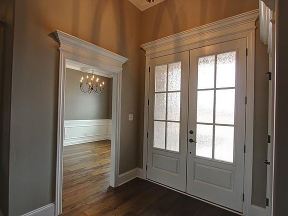 All brick Manchester Plan A is an open plan with a 3 car side entry garage backed by a 2-10 home warranty.. Home has 4 bedrooms, 3 baths and a sunroom. Great Room features 12' ceiling, extensive trim, gas-log fireplace with raised stone hearth, hand scrapped hardwood flooring and recessed lights and ceiling fan. Dining room has 10' coffered ceiling, hand scrapped hardwood flooring, extensive trim including shadow box under chair rail. Open Kitchen includes 12' ceiling, custom cabinetry with raised panel doors with fluted edges and granite counter tops, large 45 degree island with raised bar seating, stainless GE appliances including dishwasher, gas cooktop, wall oven and wall microwave, tile backsplash, hand scraped wood flooring, recessed lighting, huge walk-in pantry and drop zone bench. Breakfast has 12' ceiling, hand scraped wood flooring and extensive trim. Laundry has custom cabinet, tile flooring and laundry sink. Master bedroom has 9' ceilings plus a double tray, recessed lighting, extensive trim and ceiling fan. Master bath has 11' ceilings, glamour tub with tile surround, large corner tile shower with tile bottom and rimless shower door, separate toilet area, large double vanity with granite and huge walk-in closet. Large sunroom has vaulted ceiling, tile floor and ceiling fan. The additional bedrooms have ceiling fans and crown molding. Home has large screen porch and additional covered porch perfect for entertaining. Home includes fully sodded yard, gutters inclu