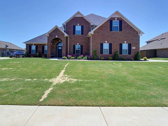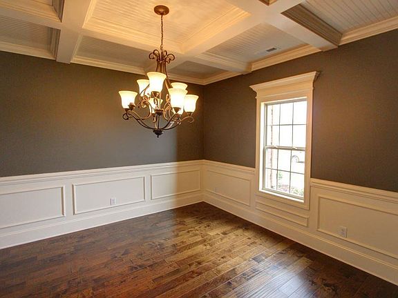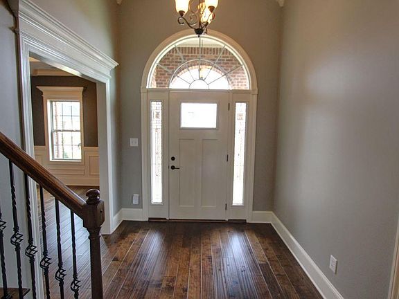 The Greenhill Plan C is a two story home with 3 car side entry garage and is backed by a 2-10 home warranty.. Home has 5 bedrooms (Master bedroom plus one are downstairs), 4 baths and an upstairs bonus room which could be a 6th bedroom. Great Room features 12' ceiling, extensive trim, gas-log fireplace with raised stone hearth, hand scrapped hardwood flooring and recessed lights and ceiling fan. Dining room has 9' coffered ceiling, hand scrapped hardwood flooring, extensive trim including shadow box under chair rail. Kitchen includes 9' ceiling, custom cabinetry with raised panel doors with fluted edges and granite counter tops, large island with raised bar seating, stainless GE appliances including gas cooktop, wall oven, wall microwave and dishwasher, tile backsplash, tile flooring, recessed lighting, and huge walk-in pantry. Breakfast has 9' ceiling, tile flooring and extensive trim. Laundry has custom cabinet, tile flooring and laundry sink. Isolated Master bedroom has 9' ceilings plus a double tray, recessed lighting, extensive trim and ceiling fan. Master bath has 11' ceilings, glamour tub with tile surround, large corner tile shower with tile bottom and rimless shower door, separate toilet area, double vanity with granite counter tops and huge walk-in closet. Second bedroom and bath down have wider doors to accommodate wheelchairs. The home has hardwood stairs leading to the second story. The additional bedrooms and bonus room have ceiling fans and crown molding. Jack