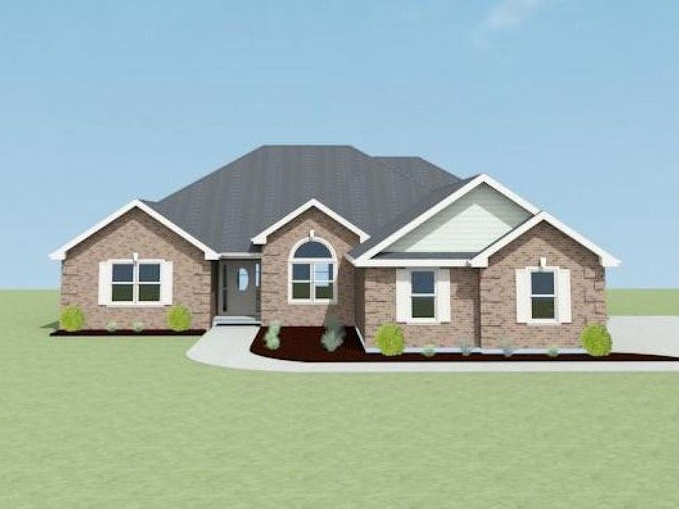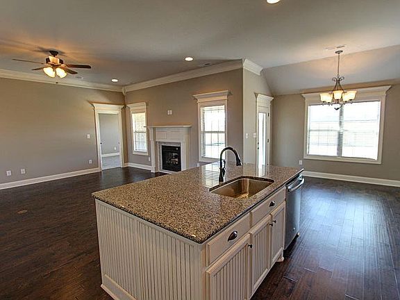 All brick Fredericksburg B is an open plan with 3 car side entry Garage and is backed by a 2-10 home warranty.. Home has 4 bedrooms, 3 baths and a sunroom. Great Room features 10' ceiling, extensive trim, gas-log fireplace, hand scrapped hardwood flooring, recessed lights and ceiling fan. Dining room has 10' ceilings plus a tray, hand scrapped hardwood flooring and extensive trim including shadow box under chair rail. Open Kitchen includes 10' ceiling, custom cabinetry with granite counter tops, large island with extra storage and countertop seating, stainless GE appliances (Electric Range, Dishwasher, Microwave), tile backsplash, hand scrapped hardwood flooring, recessed lighting and large walk-in pantry.. Breakfast has 10' ceiling, hand scrapped hardwood flooring and extensive trim. Master bedroom has a double tray ceiling, recessed lighting, extensive trim, ceiling fan and large walk-in closet with access to laundry. Master bath has 10' ceilings, glamour tub with tile surround, tile shower with shower door, separate toilet area and double vanity with granite. Large sunroom has vaulted ceiling, tile floor and ceiling fan - could be 5th bedroom. Additional bedrooms have crown molding and ceiling fans. Home has a Rinnai tank less water heater. Home has a rear covered porch. Home includes a fully sodded yard, gutters including piping under sidewalks and attractive landscaping. Builder has a closing cost program.