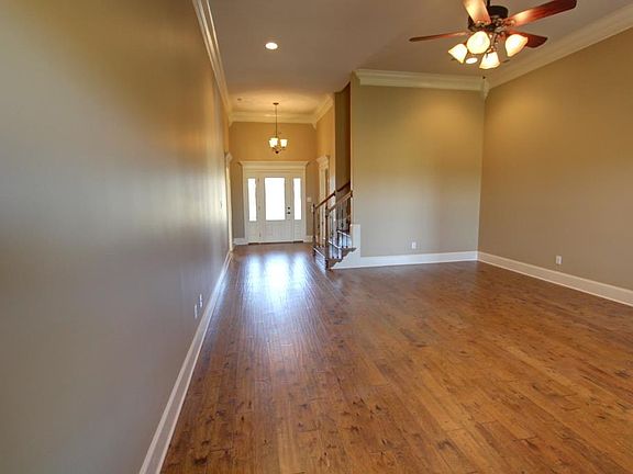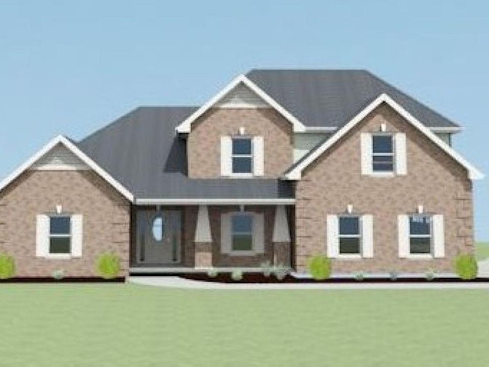 The Thomashill Plan C is a two story home with 3 car side entry garage and is backed by a 2-10 home warranty.. Home has 5 bedrooms (Master bedroom plus one are downstairs), 4.5 baths and an upstairs bonus room which could be a 6th bedroom. Great Room features 12' ceiling, extensive trim, gas-log fireplace with raised stone hearth, hand scrapped hardwood flooring and recessed lights and ceiling fan. Dining room has 9' coffered ceiling, hand scrapped hardwood flooring, extensive trim including shadow box under chair rail. Kitchen includes 9' ceiling, custom cabinetry with raised panel doors with fluted edges and granite counter tops, large island with raised bar seating, stainless GE appliances including dishwasher, gas cooktop, wall oven and wall microwave, tile backsplash, tile flooring, recessed lighting, and huge walk-in pantry. Breakfast has 9' ceiling, tile flooring and extensive trim. Laundry has custom cabinet, tile flooring and laundry sink. Master bedroom has 9' ceilings plus a double tray, recessed lighting, extensive trim and ceiling fan. Master bath has 11' ceilings, glamour tub with tile surround, large corner tile shower with tile bottom and rimless shower door, separate toilet area, double vanity with granite counter tops and huge walk-in closet. The home has hardwood stairs leading to the second story. The additional bedrooms and bonus room have ceiling fans and crown molding. There is a shared bath between two of the bedrooms. Home has a large covered front po