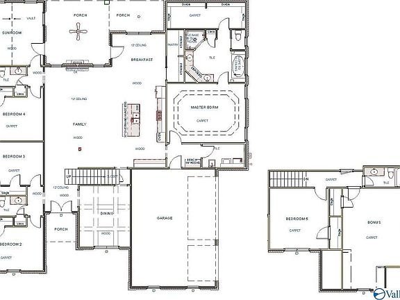 All brick. open Thornton floor plan has 5 bedrooms & 4 baths. Large Master suite with double trey ceiling, Glam bath 11' ceiling, corner shower, granite, walk-in closet. Family Room w/stone hearth, gas FP, 12' ceiling & hardwood floor & extensive trim; Formal Dining Room w/10' coffered ceiling & hardwood floor; Kitchen with 12' ceiling, granite, custom cabinetry, large island with extra storage & counter seating, pantry, tile back splash & drop zone bench; Huge sunroom with vaulted ceiling. Rev-wood throughout - NO CARPET! Sodded lawn. Subdivision has pool, tennis courts, clubhouse, sidewalks & street lights. Upgrades: 366 low E windows, hardwood in all bedrooms, and granite in all bathrooms