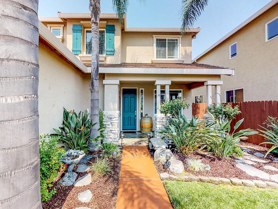 The current owners have attended to every detail of this home. From the painted walk-way in front leading to a tile covered porch, to a covered patio in the rear overlooking the pool. The home features premium granite tops throughout the home, solar system/owned saving thousands every year, wet bar/wine storage, huge master suite w/fireplace, tile shower, free standing tub, a pellet stove worth thousands, attic storage, OH garage storage, NO HOA or mello roos- View virtual tour to see more!!